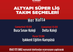 Altyapı Süper Lig Takım Seçmeleri Her Hafta; Cumartesi 10:00 Buca Sınav KolejiCumartesi 15:00 Delta KolejiPazar 13:00 Işıkkent Eğitim Kampüsü 0543 173 5802 numaralı telefondan rezervasyon yaptırarak antrenmanlara katılabilirsiniz. Altınordu Voleybol